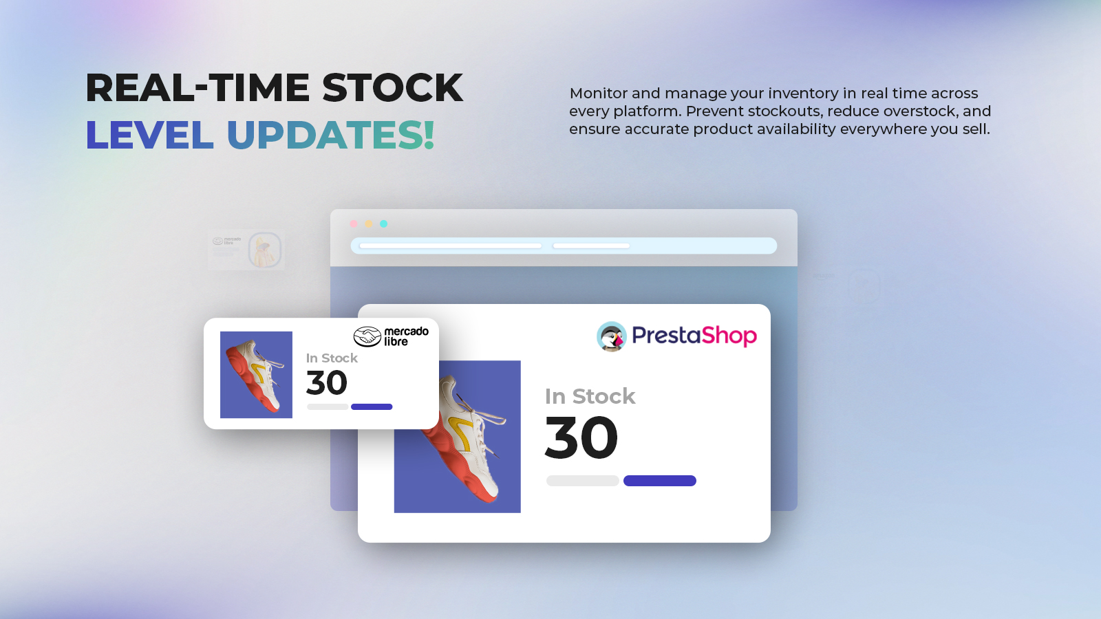 With a few clicks, you can update your inventory and ensure effortless marketplace integration for Mercado Libre from your PrestaShop store. Our PrestaShop Mercado Libre app takes care of the heavy lifting so that you can focus on what matters most - growing your business!
