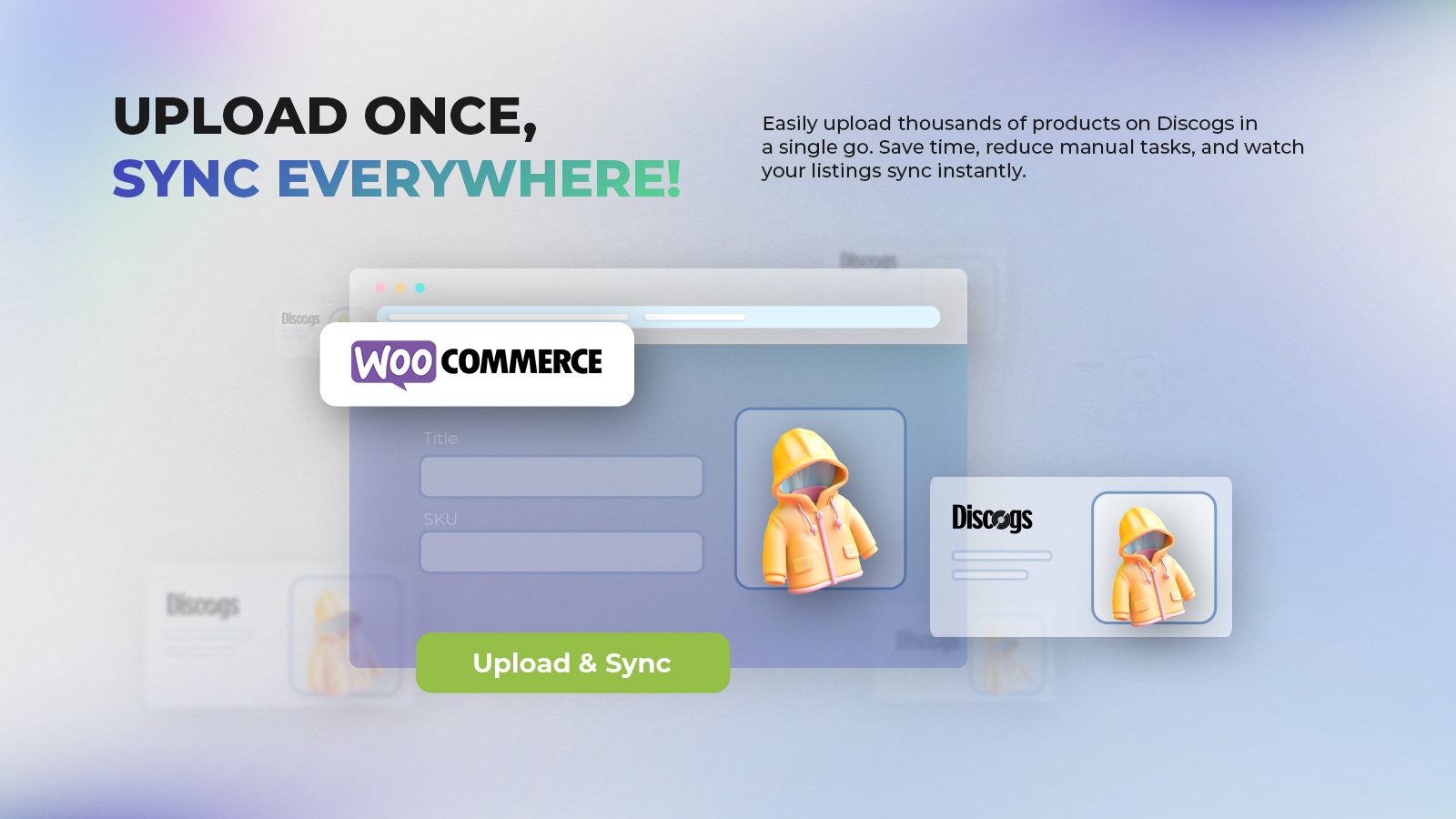 Bulk upload your products on Discogs in just a few clicks. List your products along with titles, descriptions, and images.