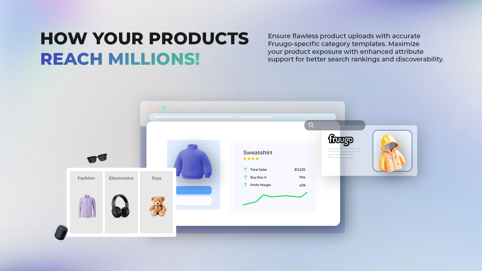 Effortlessly upload hundreds of products to Fruugo at once, saving time and effort.